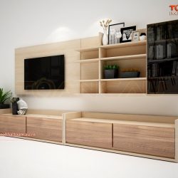 Với kiểu dáng màu sắc nhẹ nhàng, rất phù hợp với không gian căn nhà chật chội trở nên có điểm nhấn hơn. Ngoài ra tủ tivi gỗ ép công nghiệp còn có ngăn tủ để người dùng có thể dễ dàng cất những món đồ vào ngăn lưu trữ một cách gọn gàng hơn.
